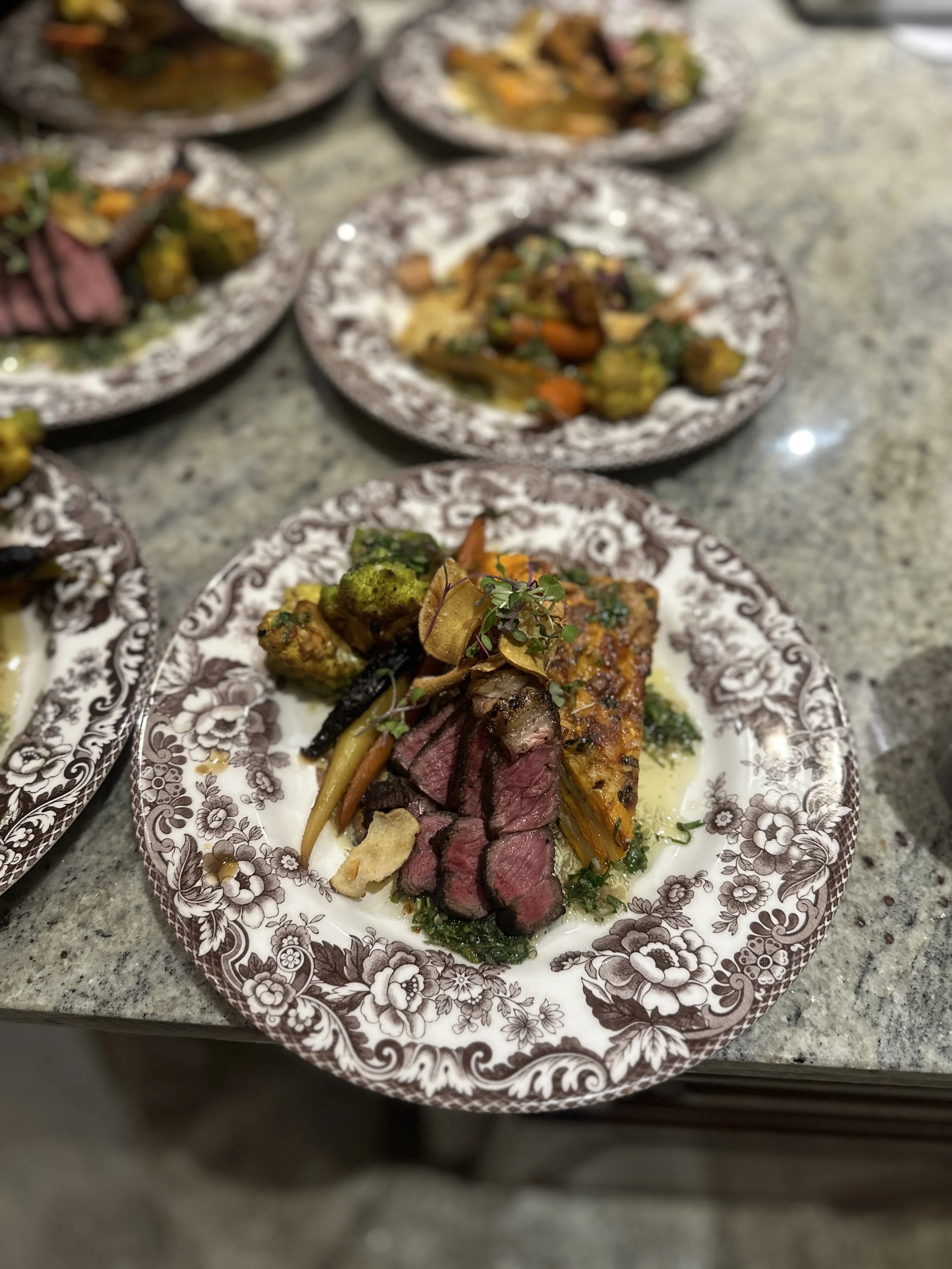 Wood-Fired/Sous Vide SRF Wagyu Flank Steak - Handmade Sweet Potato/Ricotta Gnocchi - Brown Butter/Balsamic Demi Glacé - Glazed Haricot Verts/Rainbow French Carrots - Fried Spinach